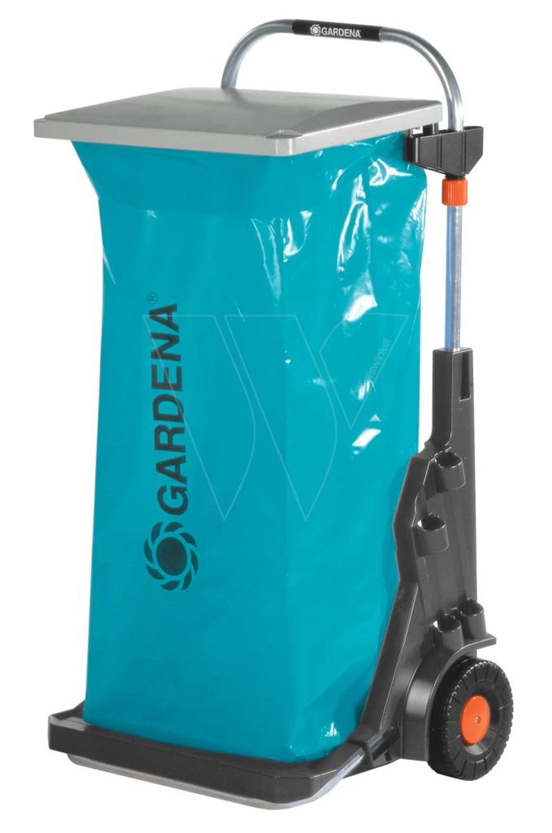 De tuinmobiel kan ook worden gebruikt voor het scheiden van afval, omdat er twee zakken naast elkaar kunnen worden bevestigd. Er is ruimte voor twee combisystem-stelen en twee stuks kleingereedschap, bijv. combisystem-gereedschappen, een handborstel e.d. Door de zakhouder te verwijderen kan de tuinmobiel tevens dienstdoen als steekwagen voor het eenvoudig vervoeren van kratten fruit en frisdrank. In de tussentijd hangt u het rek en met afvalzak aan de muur. De tuinmobiel van GARDENA is volledig uitgerust met een rek voor montage aan de muur en een afvalzak.